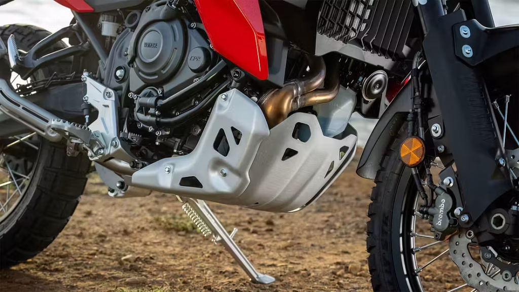Een grote verrassing was de komst van de nieuwe Ténéré World Raid niet. Nadat de nieuwe Euro5+ Ténéré line-up dit jaar vorm kreeg met de komst van een nieuw basismodel en de meer offroad capabele Rally-versie, werd al semi-officieus de komst van een nieuwe World Rally bevestigd, waarmee de lijn naar verwachting nu weer compleet is. De jongste telg krijgt daarbij niet geheel verwonderlijk een groot deel van de aanpassingen die ook het voornoemde duo ten deel viel. Te beginnen met het vernieuwde Euro5+ CP2-blok, die in zijn jongste verschijning dit jaar debuteerde in de MT-07. Ook in de World Raid is de 689cc-paralleltwin met 270°-krukas goed voor 73,4 pk bij 9.000 toeren en 68 newtonmeter koppel bij 6.500 toeren.