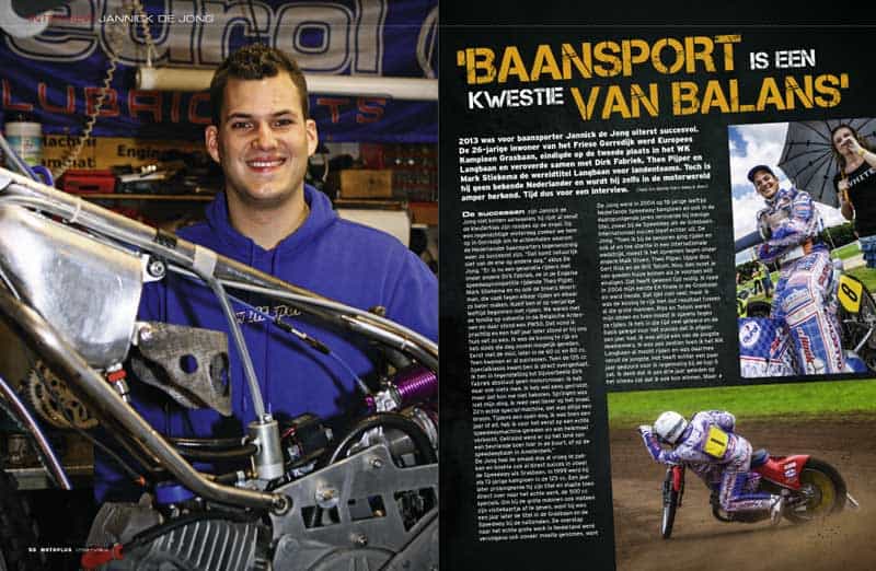 2013 was voor baansporter Jannick de Jong uiterst succesvol. De 26-jarige inwoner van het Friese Gorredijk werd Europees Kampioen grasbaan, eindigde op de tweede plaats in het WK Langbaan en veroverde samen met Dirk Fabriek, Theo Pijper en Mark Stiekma de wereldtitel Langbaan voor landenteams. Toch is hij geen bekende Nederlander en wordt hij zelfs in de motorwereld amper herkend. Tijd dus voor een interview.