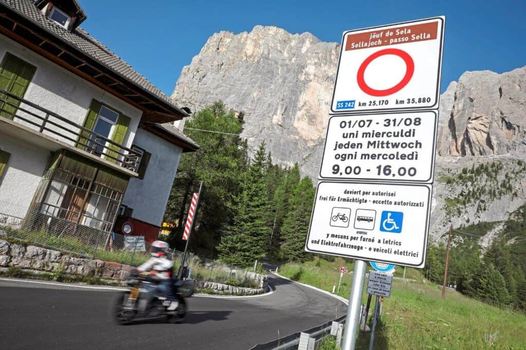 Tot nu toe troffen geluidswerende maatregelen in de Dolomieten vooral de Sellajoch, maar dat dreigt te veranderen. In 2017 werd de Sellajoch in de zomer alleen ‘s woensdags afgesloten voor voertuigen met verbrandingsmotoren. In augustus 2018 werden er maximaal tweeduizend voertuigen per dag toegelaten. Alle experimenten werden in 2019 gestaakt en door de coronapandemie was er in 2020 überhaupt weinig verkeer. De verantwoordelijke regio’s schieten nu weer in actie. De aan de Sella Ronda grenzende regio’s – Zuid Tirol, Trentino, Belluno en Veneto – hebben gezamenlijk besloten om gemeenschappelijke maatregelen te ontwikkelen die duurzame mobiliteit stimuleren op alle bergwegen rondom de Sella Ronda. Daaronder vallen onder meer de Grödner Joch, Sellajoch, Campolongo-pas en Pordoijoch. Half juni maken de betrokken partijen de eerste plannen met mogelijke maatregelen bekend. Het aantal voertuigen op de passen en in de dorpen moet en zal naar beneden gebracht worden. Twaalf videocamera’s gaan registreren welke, hoeveel en hoe vaak vervoersmiddelen passeren. Voor motorrijders belooft dat weinig goeds want ook in de Dolomieten is geluidsoverlast een hot item.