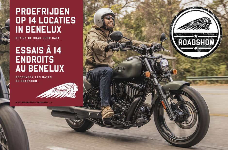 Indian biedt fans de kans om hun favoriete model te proefrijden tijdens de Indian road show van maart t/m juni 2021. De road show gaat langs bij 14 Benelux-dealers, en bijna alle Indian modellen kunnen vrijblijvend proefgereden worden. Er vertrekken een paar groepen per dag met een voorrijder. Samen wordt er een mooie rit in de omgeving van de dealer gemaakt. In April zullen ook de nieuwe FTR en Chief toegevoegd worden aan de demo line-up.