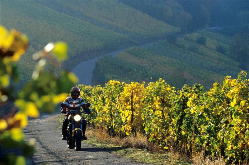 In het late najaar maakt de natuur langs de Moezel er een heel spektakel van. Er ligt dan een uitbundig rood-geel-oranje kleed over de beukenbossen en over de wijngaarden. In de late herfst is het wel een zaak van perfecte timing. Maar het gebied is bij uitstek geschikt voor de laatste grote rit van het toerseizoen en genieten van de late herfstzon en de sprookjesachtig mooie kleurenpracht.