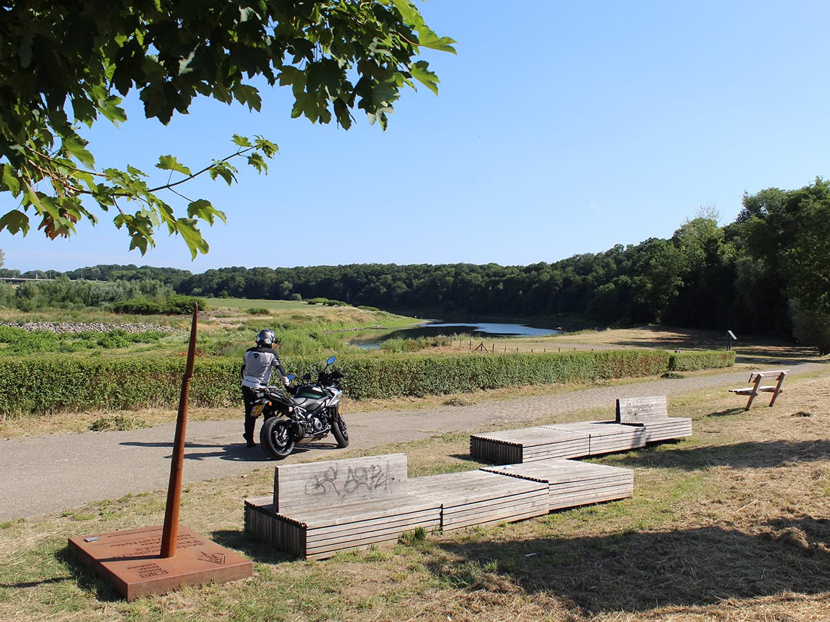 De route begint bij de thuishaven van voetbalclub MVV: stadion De Geusselt. We trekken niet meteen de Limburgse heuvels in, maar gaan eerst noordwaarts langs de dorpjes Borgharen en Itteren, die in de jaren negentig tot drie keer toe binnen een tijdsbestek van enkele jaren werden overstroomd door een ontketende Maas. We passeren ook kasteel Borgharen, een van de vele kastelen die Limburg rijk is. Na een kleine vijftig is het tijd voor een eerste koffiepauze, het oorspronkelijke vestingstadje Stevensweert nodigt hier namelijk echt voor uit.