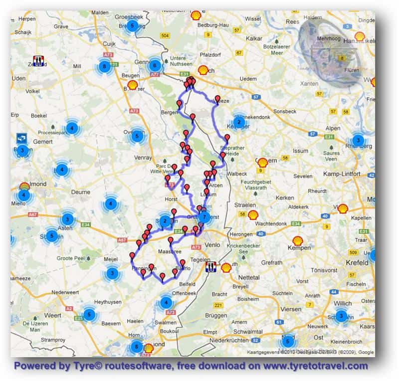 De complete route – als routebeschrijving op papier, als nauwkeurige kaart of als digitaal bestand voor in de Tom Tom of Garmin is hieronder te downloaden. Veel rijplezier. En eet smakelijk!