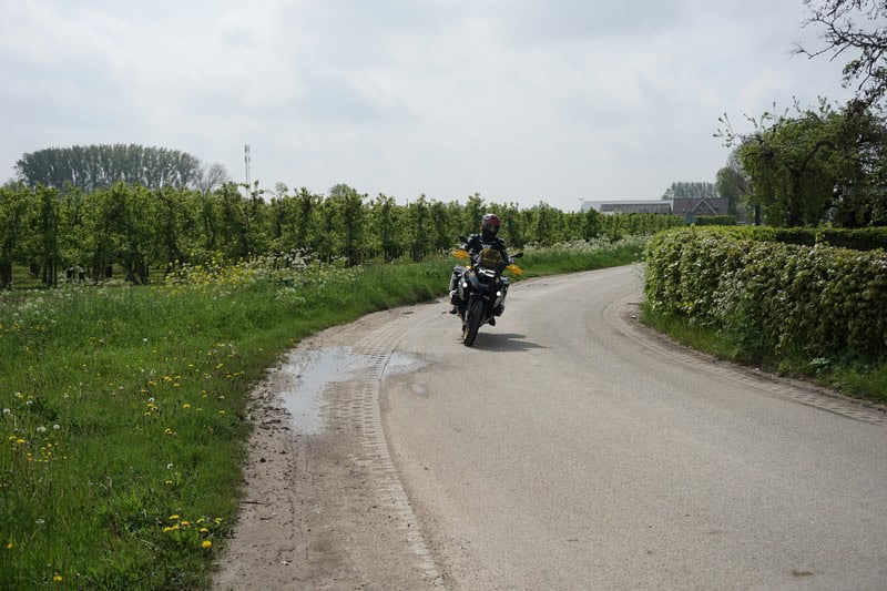 Tiel vormt zoals gezegd het beginpunt van de route, meer precies Hotel van der Valk. Van daaruit gaat het al snel door het lommerrijke dorp Echteld, waarna je niet veel later oog in oog staat met een nogal markante gebouw, de voormalige kerncentrale Dodewaard. Na het pontje over de Nederrijn bij Eck en Wiel, dient zich niet veel later het eerste MotoPlusPunt aan: Het Terras in Wijk bij Duurstede. Het tweede MotoPlusPunt bevindt zich op zo’n 105 kilometer op de route: Rust Wat in Rhenoy. Na 1001 bochten en een flink aantal boomgaarden kom je uit bij het eindpunt in Kerk-Avezaath.