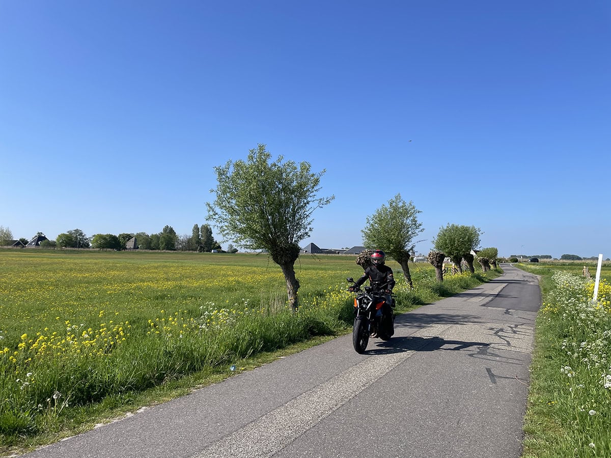 Voor de kust echter in zicht komt, gaat de route dwars door Noord-Holland. Het eerste MototPlusPunt, eetcafé de Kwikkel, bevindt zich in Medemblik, waar je kunt genieten van alle boten die onder de brug langs varen, terwijl je een kop koffie drinkt of een lunch verorbert. Het tweede MotoPluspunt, Beach Bites, vind je in Westerland, met een prachtig uitzicht op het Amstelmeer. Het eindpunt van de route is restaurant ’t Trefpunt in Schoorl.