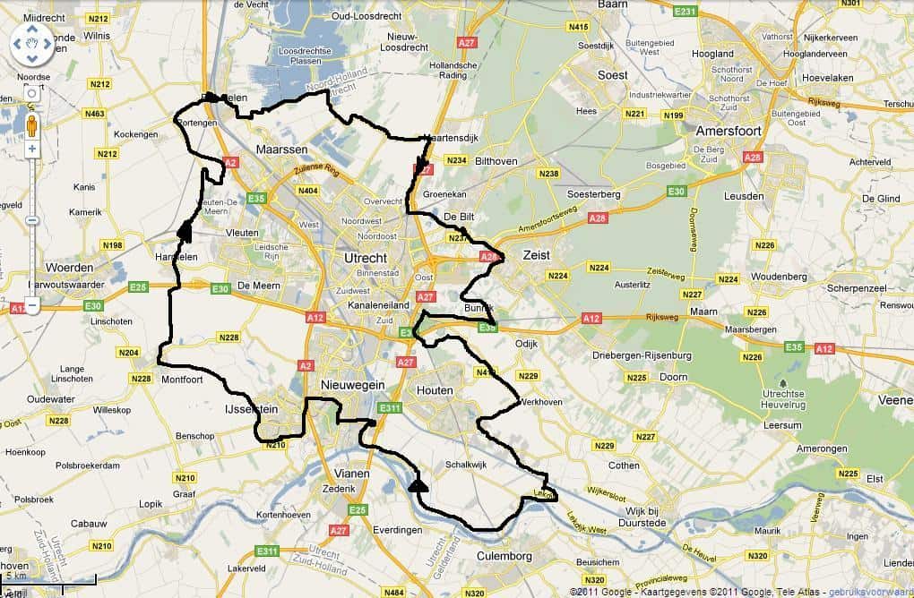 De start is bij Hotel Breukelen aan de A2 (afslag 5). Vandaar rijden we langs de Loosdrechtse plassen door de Bethunepolder, de Molenpolder en de Gagelpolder naar Groenekan, om via de Bilt richting Zeist en Bunnik langs Amelisweerd te sturen. Na ’t Goy draaien we de Lekdijk op tot Nieuwegein. Via IJsselstein en een stukje Lopikerwaard rijden we naar Montfoort en Harmelen, waarna we langs Kasteel de Haar in Haarzuilens weer terugkomen in Breukelen.