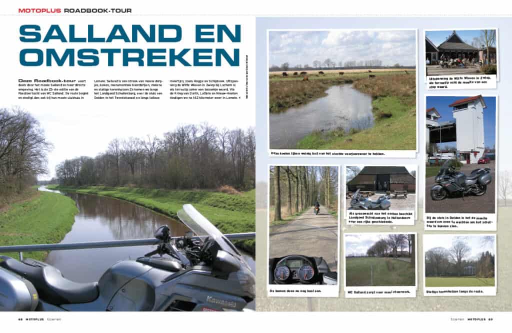 Deze Roadbook-tour voert deels door het mooie Salland en haar directe omgeving. Het is de 23-ste editie van de Paastoertocht van MC Salland. De route begint en eindigt dan ook bij hun mooie clubhuis in Lemele. Salland is een streek van mooie dorpjes, beken, monumentale boerderijen, molens en statige herenhuizen Zo komen we langs het Landgoed Schuilenburg, over de sluis van Delden in het Twentekanaal en langs talloze riviertjes, zoals Regge en Schipbeek. Uitspanning de Witte Wieven in Zwiep bij Lochem is als terrastip zeker een bezoekje waard. Via de Kring van Dorth, Lettele en Nieuw-Heeten eindigen we na 162 kilometer weer in Lemele.
