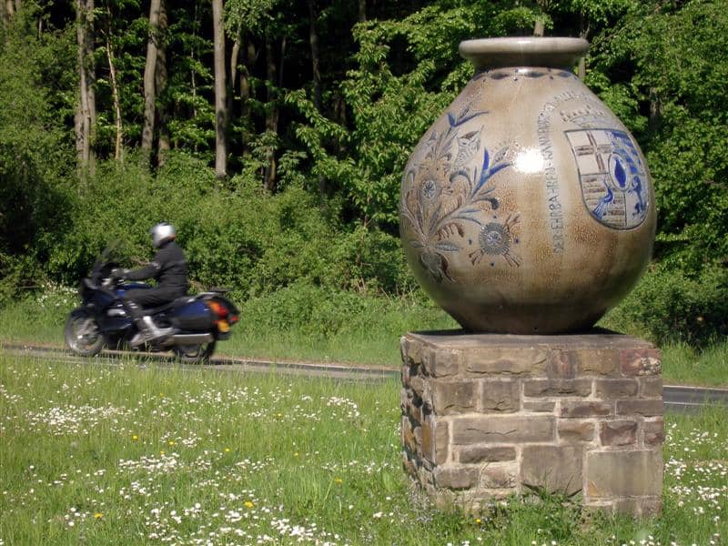 In MotoPlus 15/2010 staat een fraai reisverslag van een toer vanuit Zuid-Limburg (Pension La Chaussée) naar het Duitse Westerwald. Dat gebied ligt tussen Rijn, Lahn, Dill en Sieg, een eindje onder Keulen en is binnen een paar uurtjes rijden bereikbaar. Van oudsher was het een arme streek met weinig grondstoffen en arme landbouwgrond. Er kwam basalt vandaan, en klei die zelfs naar Italië werd geëxporteerd. De meeste steden liggen aan de randen van het Westerwald, aan de rivieren die vroeger de belangrijkste transportwegen waren. Veertig procent van het Westerwald is bebost, de hoogste bergtop is met 656 meter de Fuchskaute. Het Westerwald biedt voor motorrijders opmerkelijk veel rustige stuurweggetjes. We sliepen er in Hotel Imhäuser in Marienthal, een oase middenin de bossen, dat bestaat uit niet veel meer dan een klooster, hotel en een handvol restaurants. Eigenaar Egon Krenz rijdt zelf ook motor en weet wat het motorhart begeert.