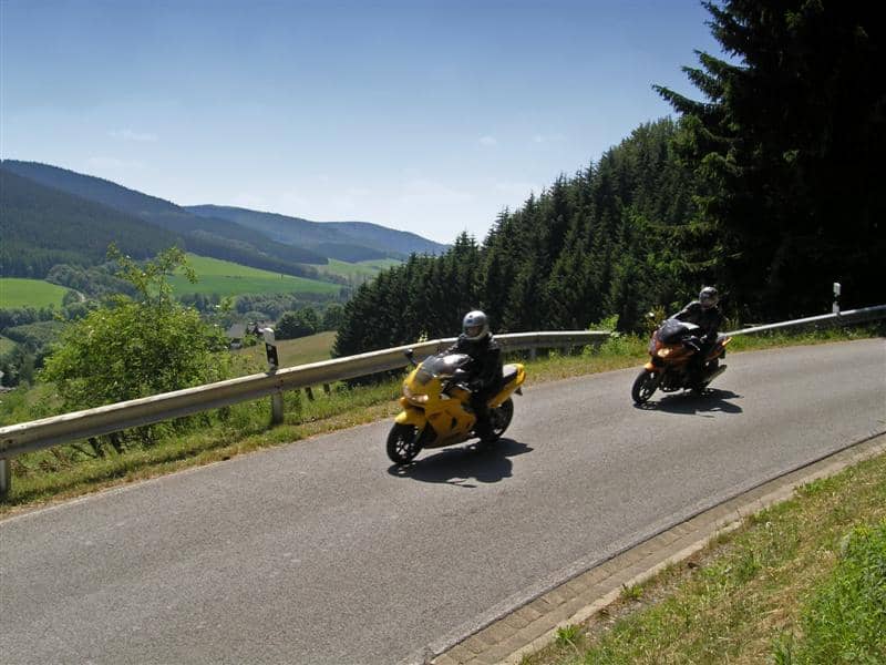’s Winters en ’s zomers trekken massa’s Nederlanders naar dit Duitse Middelgebergte op korte afstand van de Nederlandse grens. Voor de sneeuw, voor de zon, voor de bergen en voor de natuur. “De Hollandse Alpen” noemen Duitsers het Sauerland dan ook wel eens spottend. Een Hollandse kolonie, met de stad Winterberg als hoofdstad. In de buurt daarvan, op de Kahler Asten, vond ik een prettig hotel, in de uitzichttoren bovenop de berg: Berghotel Kahler Asten, Astenturm 1, 59955 Winterberg (www.kahlerasten.de). Als lezer van Moto Plus mag je de motor gratis in de garage stallen als je er komt overnachten.